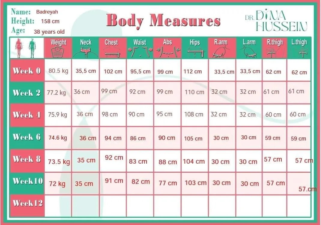 استطاعت خسارة ١١ كيلو في١٢اسبوع من نظام المرونة